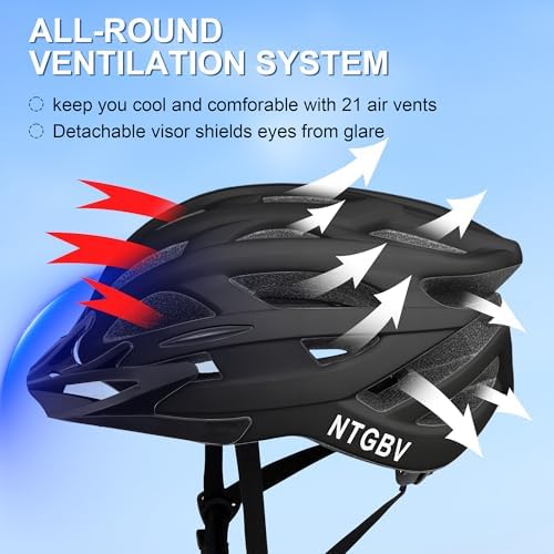 Stay Cool on Long Rides: 21 precision vents team up with airflow channels to beat the heat. Detachable visor shields eyes from glare. This adult bike helmet keeps men and women breezy during intense cycling sessions or casual commutes