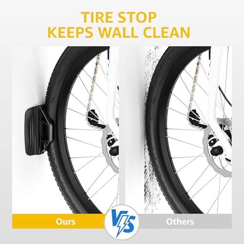 【Upgraded 150° Swivel Design】 Swivel design with bearing system, bike hangers for garage conveniently stores bikes in center, left or right-angled position, simply pivot your bike left or right with a +65°/-85° swivel range. The swivel system allows you to store bike flush against the wall, making it a convenient storage solution around parked cars and inside apartments.