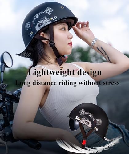 【Lightweight Design】This half helmet adopts professional lightweight design, making the head weightless and reducing the pressure and fatigue of long-distance riding. Designed with 4 ventilation holes to keep air circulating at all times, bringing you a comfortable driving experience.